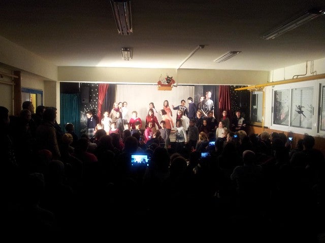 L’acte començà a les 18 hores amb un vídeo resum de algunes de les obres de teatre que Cucurucú ha realitzat amb l’alumnat del centre, aquest vídeo el va muntar un alumne del Grup Deimos de l’escola de teatre. Després alumnes de dos grups Casiopea del Lope de Vega i Alfa Centauri del Centre Cultural Sant Marc, feren una xicoteta representació on expressaven els canvis que desitgem per fer un món més inclusiu i respectuós amb els altres, com deien els xiquets i xiquetes “un món millor”. Finalitzaren interpretant la cançó el Swing de la pau.