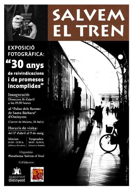 ‘Salvem el tren’ portarà a Ontinyent l’exposició fotogràfica sobre la línia Xàtiva-Alcoi. L’exposició recull 50 fotografies que ens parlen dels últims 30 anys de la línia de tren que vertebra la comarca de la Vall d’Albaida. Les fotografies són de membres de la Plataforma i de periodistes gràfics com ara Pepe Soto, Paco Grau, Juani Ruiz o Josep Fuster.