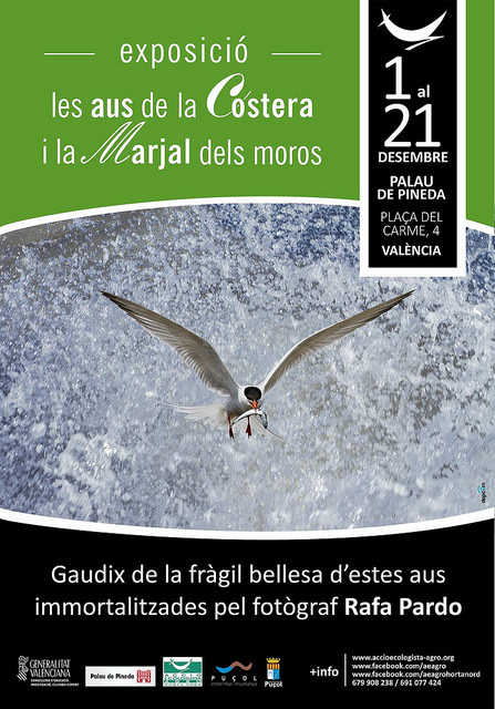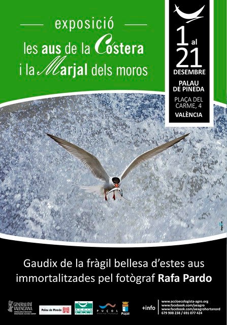 La inauguració d’esta exposició fotogràfica, organitzada amb la col·laboració de l’Ajuntament de Puçol, serà el pròxim dijous, 3 de desembre, a partir de les 19:00 hores. L’acte comptarà amb aperitius vegetarians, a càrrec de la cooperativa groecològica L’Aixada com Eixida de Picassent (Horta Sud, València), i amb una degustació de cervesa i vi ecològic: Las aves de paso (Bogegas Lonecesario) i Altura de vuelo (Cervezas Fernández Pons). Així que si vols descobrir la fràgil bellesa d’estes aus, immortalitzades entre mar i muntanya pel fotògraf d’Acció Ecologista-Agró Rafa Pardo, i tastar aperitius, vins i cerveses ecològiques, no et pots perdre la inauguració d’esta exposició.