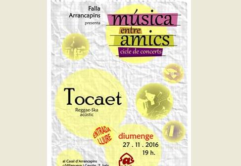 Tocaet són Pau Collado “Papaloko” a la veu, Carlos Boscà a la guitarra, i Guillem Romero a les percussions i la dolçaina.