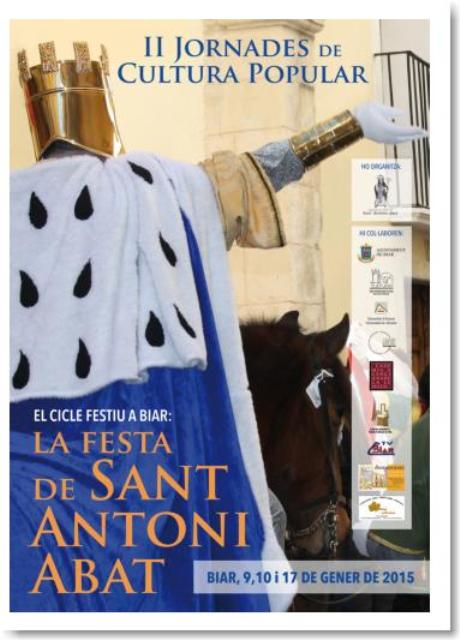 Des de la Comissió de Sant Antoni de Biar i la Seu Universitària de Biar hem volgut organitzar unes Jornades que dig- nifiquen, promocionen i expliquen la festa de Sant Antoni a Biar. Una festa molt arrelada al poble i amb gran participació popular. Dins d’aquesta festivitat conviuen tradicions molt antigues que posen de manifest la manera de fer festa dels valencians com a poble de la mediterrània. El curs pretén ser una reflexió sobre el lloc que ocupa la cultura tradicional i popular en els nostres dies, una cultura basada en la paraula, en el gest, el cant o la dansa, en un món global basat en la imatge i en la presència virtual.