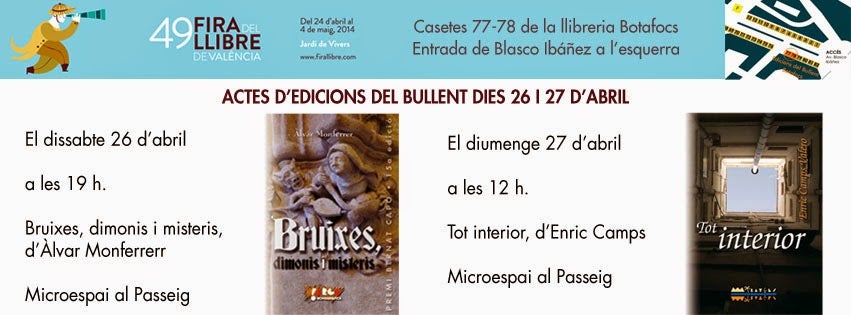 Serem a la caseta 77-78 de la llibreria Botafocs (en taronja al plànol que trobareu al final de la pàgina). Com podeu veure, enguany cal començar la Fira del llibre de València per l’esquerra!