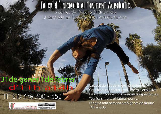 Tenim doble proposta per al cap de setmana del 31. Tot a càrrec de Natalia D. Anunnzio, tenim la proposta de ”taller d’inciació al moviment acrobàtic” durant els matins del dissabte i del diumenge.