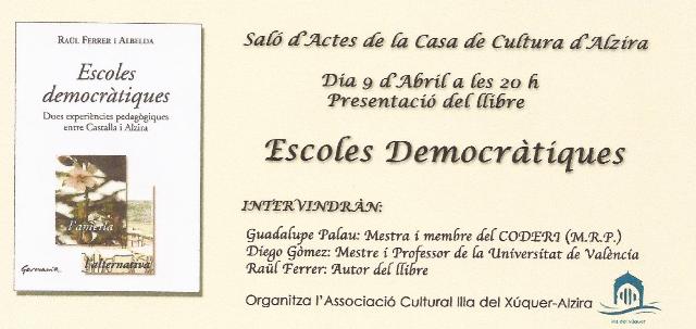 Acte de presentació del llibre ESCOLES DEMOCRÀTIQUES