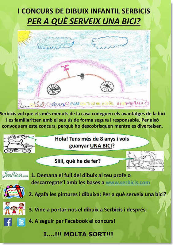 Per això convoquem el I CONCURS DE DIBUIX INFANTIL SERBICIS: PER A QUÈ SERVEIX UNA BICI?