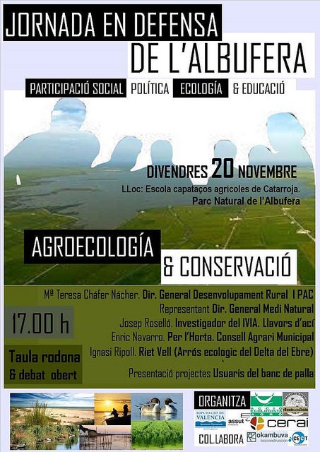 Esta jornada de reflexió comptarà amb una taula redona, per a la qual hem convidat a representants de les administracions responsables de la gestió de la palla de l’arròs i l’Albufera, com ara la Conselleria d’Agricultura, Medi Ambient, Canvi Climàtic i Desenvolupament Rural. Concretament participarà un representant de la Direcció General de Medi Natural i Maite Cháfer, Directora General de Desenvolupament Rural i Política Agrària Comú (PAC). També hem convidat a Josep Roselló, científic de l’Institut Valencià d’Investigacions Agràries i membre de l’associació Llavors d’Ací. I per a parlar de les possibilitats de l’arròs ecològic a l’Albufera tindrem a Ignasi Ripoll (projecte Riet Vell de SEO/BirdLife) que explicarà com funciona esta iniciativa al Delta de l’Ebre. Per últim, cal destacar que comptarem també amb Enric Navarro, llaurador ecològic i representant de Per l’Horta i el Consell Agrari Municipal de València.