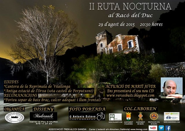 L’associació del Tren Alcoi Gandia vol transmetre l’activitat que te preparat per al pròxim dissabte 29 d’agost anomenada “II Marxa Nocturna al Racó del Duc”.