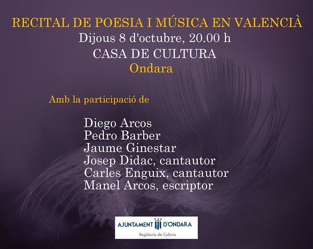 Se celebrarà el II Recital de Poesia i Música en Valencià a la Casa de Cultura d’Ondara.