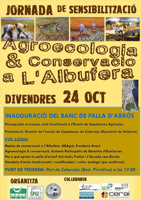 Demà divendres, Acció Ecologista-Agró, el Sistema de Participació de Garantia d’Ecollaures i la Cooperativa Agroecològica L’Aixada com Eixida, amb la col·laboració de l’Escola de Capatassos Agrícoles de Catarroja, la Fundació Assut, SEO/BirdLife, Col·lectiu Trellat i el CERAI (Centre d’Estudis Rurals i d’Agricultura Internacional), inaugurem el primer banc de palla d’arròs de l’Albufera, una iniciativa pionera que conjuga conservació i agroecologia.