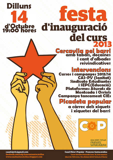 Un any més des del Casal Obrer i Popular Francesc Santacatalina tenim el plaer de convidar-vos a la nostra festa d’inauguració de les activitats i cursos del Casal per a la temporada 2013/2014.