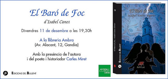 El pròxim divendres 11 de desembre, a les 19.30 h, estarà amb nosaltres Isabel Canet Ferrer, autora del llibre El Baró de foc,