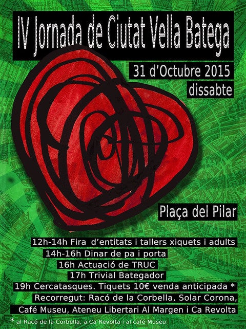Aquest dissabte 31 d’octubre amb el lema CIUTAT VELLA FA BON CALDO celebrem a la plaça del Pilar de València la IV edició de Ciutat Vella Batega.