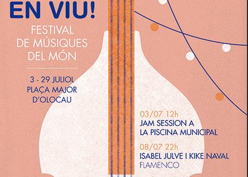 El Festival arranca el dia diumenge 3 de juliol a la piscina municipal a les 12h del matí, amb la col·laboració de la Jazzband d’Olocau. El primer concert a la plaça el divendres l’enceta la flamenca Isabel Yulve amb el guitarrista Kike Naval, el dia 15 sonarà Freme fractal, versionant i fusionant clàssics del Rock. Per a la següent setmana, l’aposta innovadora de Jazz Electrònic amb Paulihna Cánovas Quartet, i l’encarregada de tancar el festival la brasileña Thais Morell el dia 29 de Juliol.