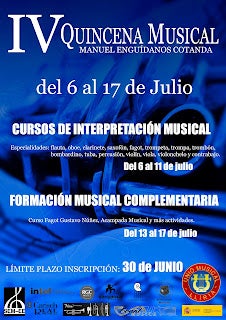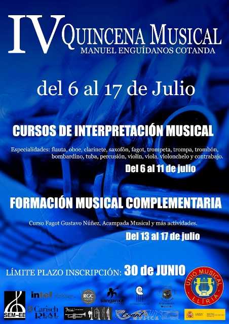 Ja està obert el termini de matriculació en la IV Quinzena Musical Manuel Enguídanos Cotanda, que tindrà lloc del 6 al 17 de juliol de 2015 en la Unió Musical de Llíria.