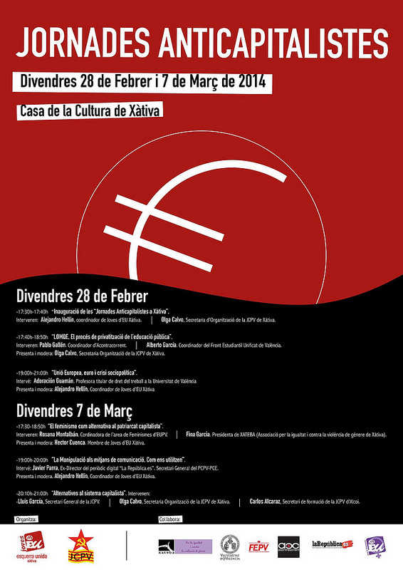 Les Jornades Anticapitalistes a Xàtiva pretenen donar un mínim de formació al respecte de la crisi del sistema, la deshumanització inherent a aquest i la necessitat de canvi social, econòmic i polític.