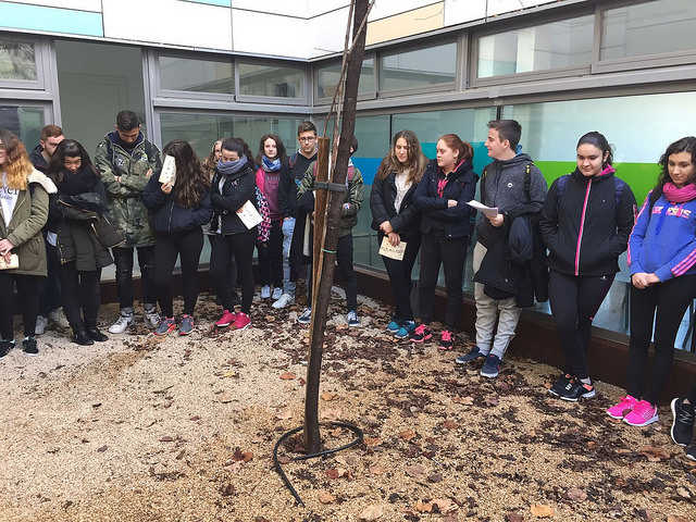 El primer acte ha estat la inauguració d’un memorial per les víctimes, instal·lat a la planta baixa del centre, en el qual han participat alumnes de 4t d’ESO.