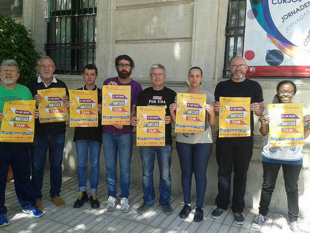 La Plataforma en Defensa de l’Ensenyament Públic ha presentat en roda de premsa la manifestació convocada per al pròxim dissabte 9 de maig de 2015 amb quatre objectius “#CapEscolaEsTanca” “#NoAl3més2” “#SíalValencià” i #AturemLaLOMQE” amb el lema: PEL CANVI EDUCATIU