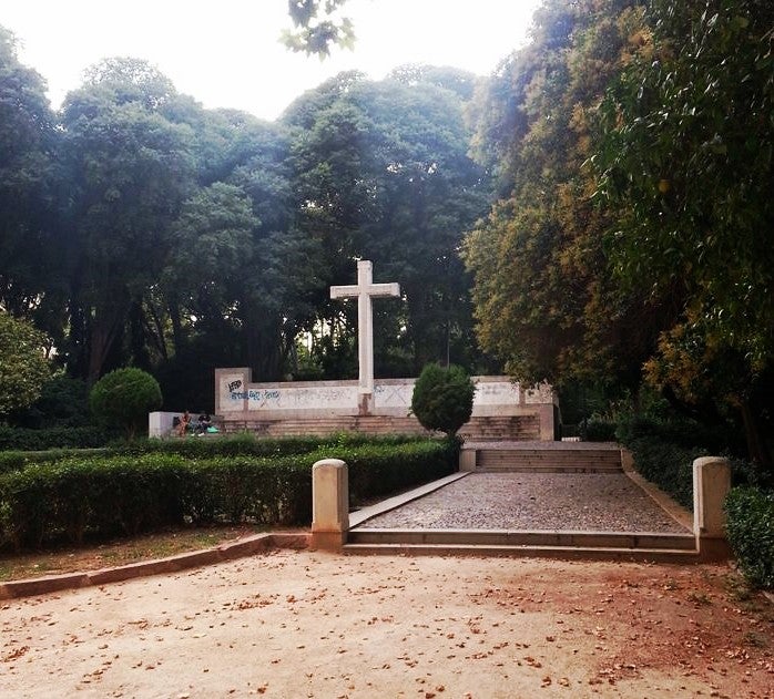 La “Cruz de los Caidos por Diós y por España”, construïda pels feixistes l’any 1.938 a Castelló de la Plana, dins del recinte del Parc Ribalta, el parc més important de la ciutat, continua en peu quasi 80 anys desprès. Amb l’arribada del primer ajuntament democràtic l’any 1.979, desprès de la dictadura franquista, una agrupació electoral d’esquerres anomenada EIC (Esquerra Independent de Castelló) que havia aconseguit 2 regidors, va presentar un propossició al Ple Municipal per a que la “Creu dels Caiguts” fora enderrocada. En aquell moment governava l’ajuntament de Castelló el PSOE, amb el recolzament del PCE (una sola regidora) i el total de l’ajuntament estava format per regidors del PSOE, regidors de la UCD, 2 regidors d’EIC i 1 regidor del PCE. La proposta d’enderrocar la “Cruz de los caidos” presentada per la EIC, va ser rebutjada pel ple municipal, amb el vot en contra de tots els regidors (PSOE, PCE y UCD) i només els dos vots favorables de la EIC. L’Alcaldedel PSOE, Antonio Tirado Gimenez (posteriorment encausat pel saqueig del Banc de València) va acallar les protestes fent treure la llegenda feixista (Caidos por Diós y por España, presentes !) i els simbols de la falange, colocant en el seu lloc una llegenda que deia “A todas las víctimas de la violencia”. Actualment, aquesta llegneda també ha desparegut i només queda en peu el monument feixista, construït immediatament desprès de l’entrada de les tropes de Franco a la ciutat, amb els dosells buits snese inscripcions ni insignies. Ja es hora de fer desapreixer aquest vestigi franqista de la ciutat de Castelló
