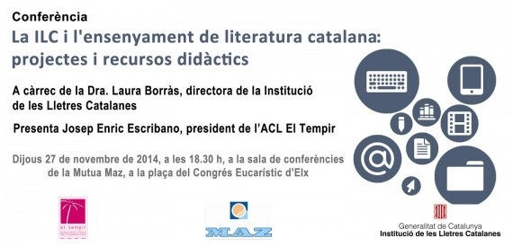 A fi de millorar l’ensenyament de la literatura catalana entre l’alumnat, El Tempir organitza amb la col·laboració de la Institució de les Lletres Catalanes (ILC) la conferència “La ILC i l’ensenyament de literatura catalana: projecte i recursos didàctics” a càrrec de la doctora Laura Borràs, directora de la ILC. L’objectiu d’aquest acte és que el professorat que hi assistisca conega tots els projectes i recursos que la ILC ofereix en format TIC (Tecnologies de la Informació i la Comunicació) i en altres suports perquè l’alumnat se senta atret, motivat i interessat pel coneixement de la nostra literatura.