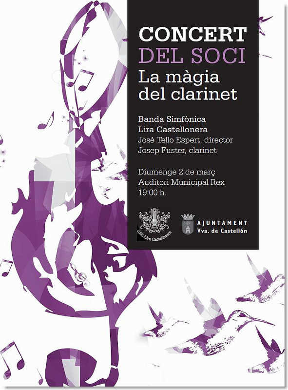El pròxim diumenge 2 de març la Lira Castellonera ens oferirà el Concert del Soci, un concert que en els últims anys va adquirint solidesa gràcies a la presentació d’uns programes de qualitat. Enguany gaudirem amb tota seguretat de les obres seleccionades pel mestre Pepe Tello i, a més, tindrem l’honor d’escoltar un dels millors clarinetistes d’Espanya, el músic castellonenc Josep Fuster i Martínez.