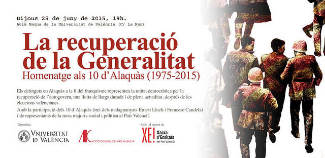 La recuperació de la Generalitat. Homenatge als 10 d’Alaquàs (1975-2015) Dijous 25 de juny Aula Magna de la Universitat de València