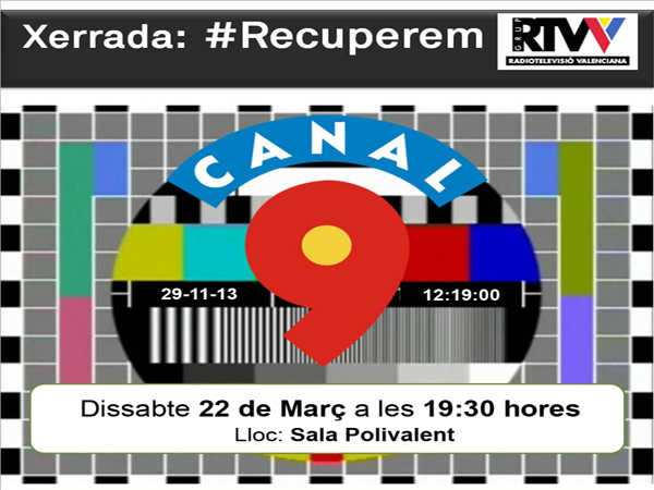 El pròxim dissabte 22 de març, a les 19:30 hores, a la Sala Polivalent de Castelló de la Ribera, hi haurà una xerrada-debat per a tractar les repercussions en la societat valenciana del tancament de la radiotelevisió pública valenciana.