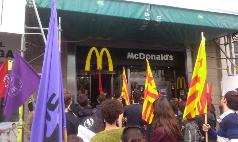 Preguem estigueu atentes i atents a futures convocatòries de solidaritat amb els i les que lluiten a McDonald’s. Cap agressió sense resposta.