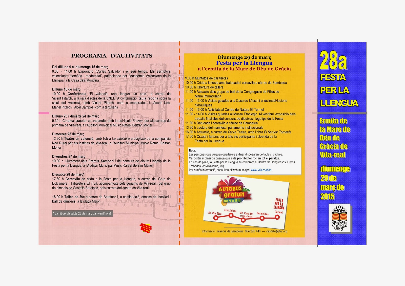 L’AMPA de l’escola Herrero participarà en la Festa per la Llengua que enguany se celebrarà a Vila-real (Ermita de la Mare de Déu de Gràcia) el proper diumenge, 29 de març de 2015.