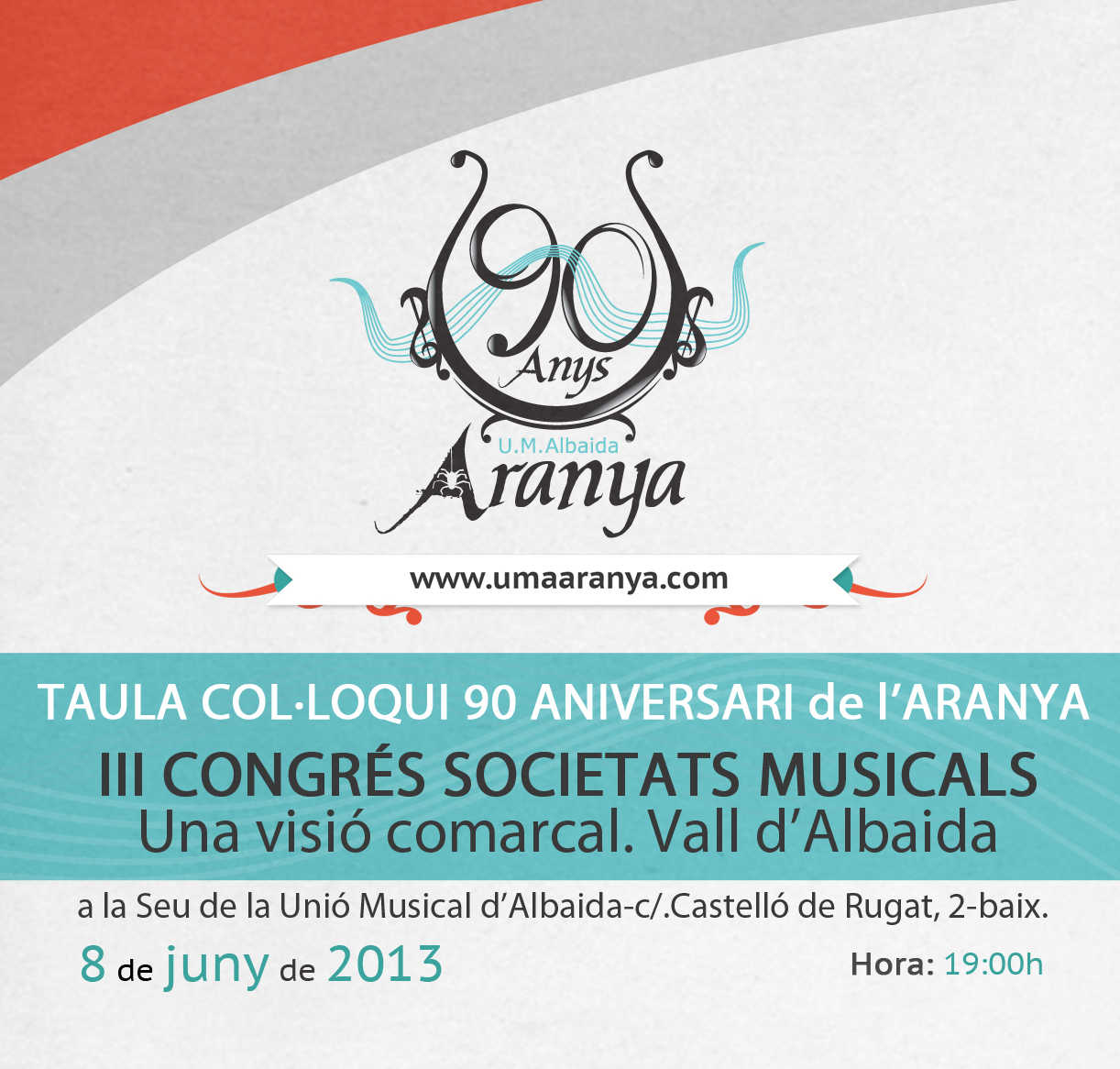 La seu de la societat musical L’Aranya d’Albaida acollirà dissabte 8 de juny a les 19 hores una taula col·loqui al voltant del III Congrés de Societats Musicals de la Comunitat Valenciana.