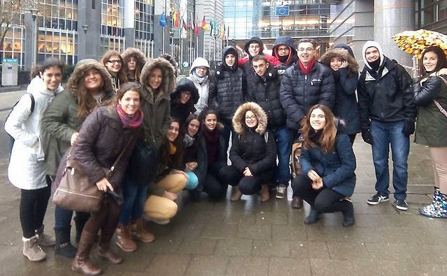 Una vegada entrevistats europarlamentaris com Andrés Perelló (PSOE), Eva Ortiz (PP), ex-eurodiputats com Marisa Bergaz (EU), i llavors candidats com Julià Álvaro (Compromís), i havent aprés amb les seues plurals reflexions, el passat 24 de febrer ens va rebre a la seu de Brussel·les l’eurodiputada Marina Albiol, que, gràcies a Marisa Bergaz, ens va gestionar la visita i ens possibilità concloure l’aventura iniciada un any abans. Els nostres alumnes pogueren saludar l’eurodiputat valencià Jordi Sebastià, i parlar i debatre sobre l’actualitat d’Europa amb Marina Albiol, una veu lluitadora i en femení de l’esquerra europea, i amb qui ens vam endinsar en l’actual situació de Grècia, en l’injust i sigil·lós Tractat de Lliure Comerç, en el conflicte d’Ucraïna o en l’amenaça terrorista, entre d’altres. Parlàrem d’una Europa que es debat entre la benevolença de les xifres i el clam de recuperar un rostre humà.