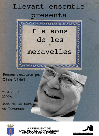 Amb aquest concert retem homenatge al gran poeta Vicent Andrés Estellés. Poeta proper, poeta del poble, poeta culte, lasciu, quotidià, valencià. Amb els seus versos s’enrama la música amb eixa màgia que tan difícil ens és d’explicar. Què és allò que marida la paraula i la música? La concreció amb l’abstracció? Quin lligam oculte uneix un poema dedicat a Gandia amb una dansa romanesa? Filòsofs pitagòrics, racionalistes, hermenèutics, postmoderns, romàntics, mil·lenaris o actuals han cercat la resposta. Importa el per què, però ens encaterina el fet, la màgia, el fluir en el vent del temps, les paraules entremaliades amb harmonies.