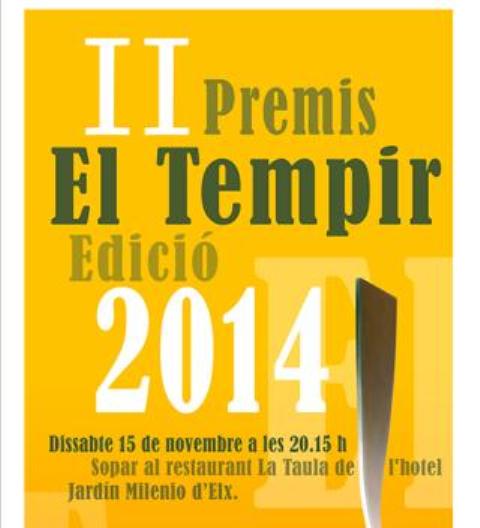 Lliurament dels II Premis El Tempir el pròxim 15 de novembre a Elx