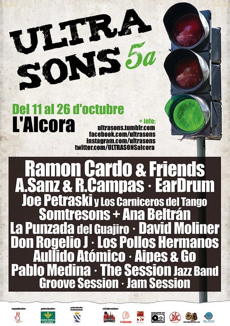 I per tancar el festival, 26 d’octubre, el sextet castellonenc Joe Petraski y Los Carniceros del Tango proposarà un viatge a Buenos Aires. El grup va enregistrar l’any passat el seu primer treball discogràfic al Saló Gòtic de Casa de la Música de l’Alcora, nucli i centre de gravetat del festival ULTRASONS. I a la nit, temps per als udols dels llops, primer Aullido Atómico, nou trio de r&r amb un directe incendiari. I per no desaprofitar l’estada de Don Rogelio J., una sessió seua per a explorar aquest artista tot-terreny.