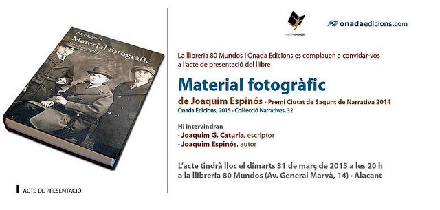 La presentació serà dimarts 31 a les 20h a la llibreria 80 Mundos d’Alacant (Av. General Marvà, 14). L’esdeveniment comptarà amb la participació de l’autor, Joaquim Espinós i de l’escriptor Joaquim Caturla.