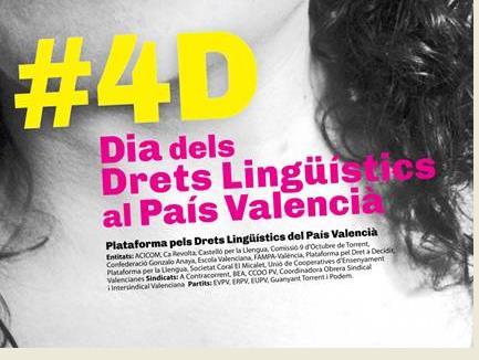 La Plataforma pels Drets Lingüístics al País Valencià (PDL-PV) està formada per les entitats ACICOM, Ca Revolta, Castelló per la Llengua, Comissió 9 d’Octubre de Torrent, Confederació Gonzalo Anaya, Escola Valenciana, FAMPA-València, Plataforma pel Dret a Decidir, Plataforma per la Llengua, Societat Coral El Micalet, Unió de Cooperatives d’Ensenyament Valencianes; els sindicats A Contracorrent, BEA, CCOO PV, Coordinadora Obrera Sindical i Intersindical Valenciana, i els partits polítics EVPV, ERPV, EUPV, Guanyant Torrent i Podem.