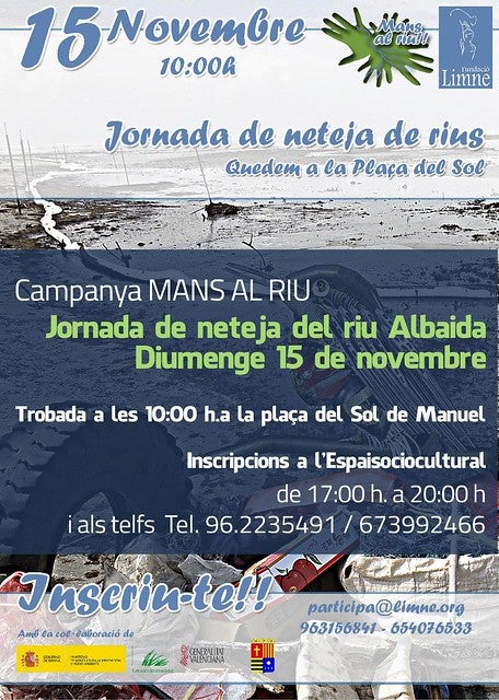 L’activitat a Manuel està convocada a les 10:00, sent la plaça del Sol el lloc de trobada. L’organització, per altra banda i amb intenció de calcular el material, prega que les persones interessades a participar s’inscriguen prèviament enviant un email a participa@limne.org o cridant als telèfons 963156841 / 654076533.