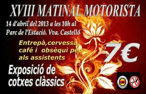 El proper diumenge dia 14 d’Abril celebrarem la nostra XVIII matinal motorista al recinte del Parc de l’Estació. Com sempre hi hauran entrepans, cerveseta, obsèqui als assitens i moltes, moltissimes motos.