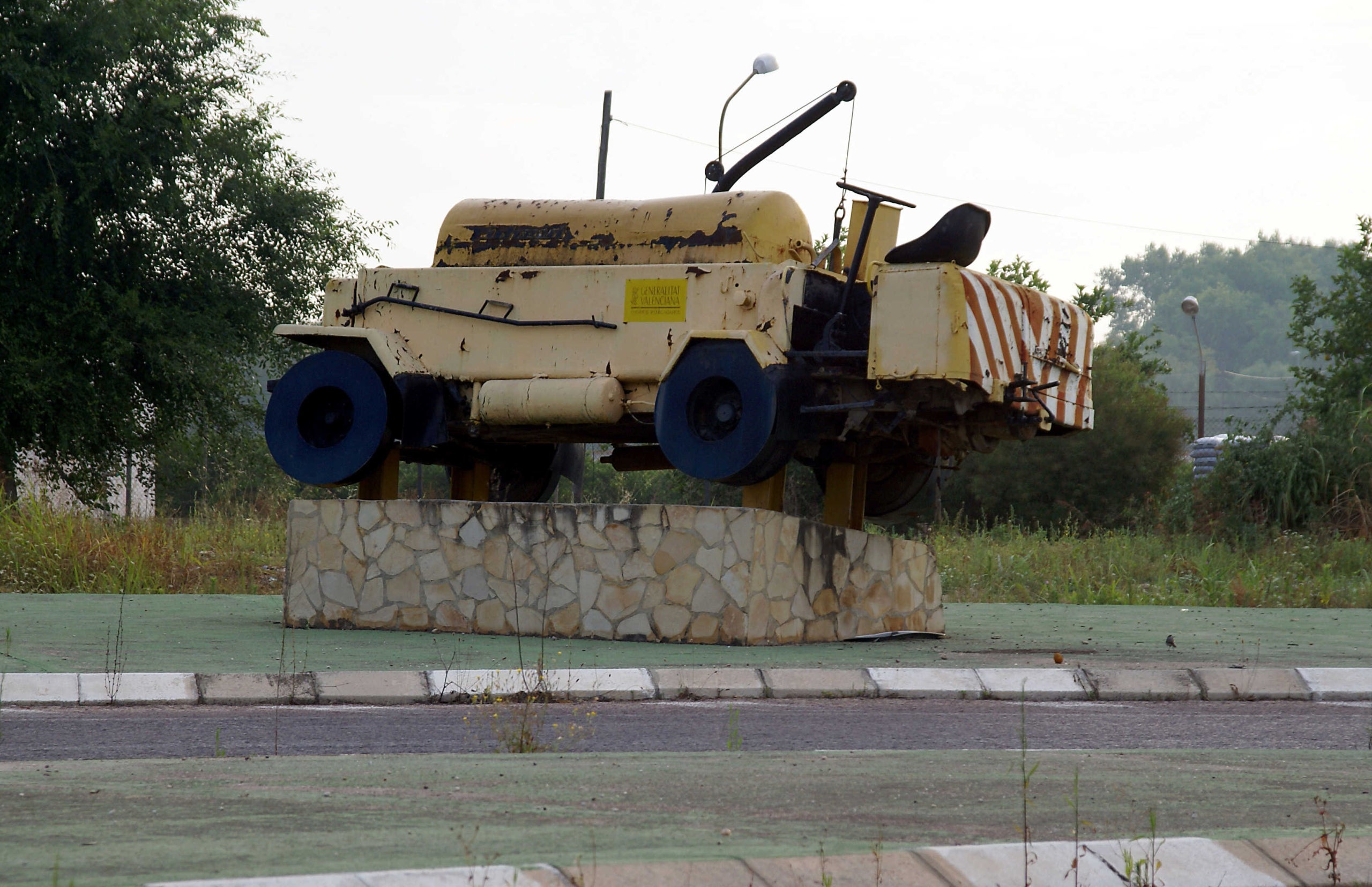 Quan el visitant arriba per primera vegada a Algemesí per la CV-512, per la carretera d’Albalat-Alzira, la primera impressió d’Algemesí que s’emporta és totalment negativa. Es troba amb una màquina antiga d’asfaltar, pintada de groc, dalt d’un pedestal, totalment deteriorada, amb bonys, plena de rovell, amb la pintura alçada… La imatge que s’endú és totalment negativa, la d’un poble totalment deixat (Podeu veure unes fotos en aquest enllaç).