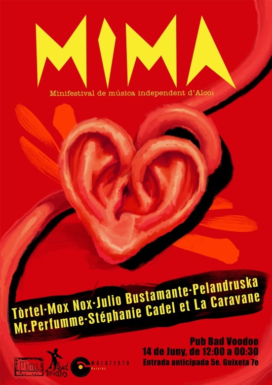 El cartell d’aquest 2014 estarà format per Tórtel (cap de cartell, qui arriba a Alcoi per primera vegada per presentar-nos el seu nou disc ‘La gran prueba’, molt aclamat per la crítica), Julio Bustamante (tota una eminència i una referència indiscutible dels músics valencians, presentant‘Viento desatado’), Mox Nox (un dels grups de recent formació que més sorpreses està donant a la música escrita en la nostra llengua, també per primera vegada a Alcoi presentant ‘Damnatio Memoriae’), Mr. Perfumme (darrer fitxatge del segell col·laborador del MIMA Malatesta Records presentant ‘Amor, amor, amor’), Stéphanie Cadel et la Caravane (música amb records de la ‘chanson française’) i, com dèiem, gent de casa com són Pelandruska(presentant el seu nou disc ‘bodes, batejos i circumsicions’).