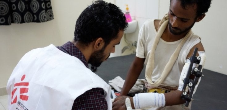 MSF recolza i dirigeix 30 hospitals en 8 de les províncies de Iemen. Com a organització mèdic-humanitària imparcial i neutral, ofereix tractament a totes les persones que ho necessiten, independentment de les seves afiliacions religioses, tribals, polítiques o militars. Més de quaranta mil ferits de guerra han estat tractats en hospitals de MSF, o en estructures mèdiques recolzades per MSF, des de març de 2015.