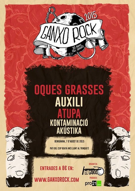 Aquestes dos confirmacions es sumen a les d’Auxili i Kontaminació Akústika. Com ja va avançar El Ganxo, les entrades han pujat de preu i han passat de 6€ a 8€. Es podran comprar online en la pàgina web www.ganxorock.com.