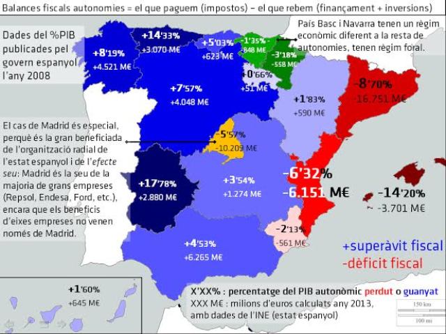 Segons l’ONU, un dèficit fiscal superior al 4%, com el del País Valencià, és propi de colònies, com fan les potencies ocupadores amb el tercer món. Els economistes qualifiquen com a espoliació un dèficit fiscal sistemàtic i continuat en el temps. Per això, la Plataforma pel Dret a Decidir parla d’espoliació fiscal. D’aquesta manera, l’estat espanyol dibuixa un mapa dels Països Catalans amb les comunitats autònomes que tenen un dèficit fiscal superior al 6%. Entre les Illes, Catalunya i el País Valencià sumen 26.603 milions d’euros, sent el de les Illes un cas extrem d’espoliació fiscal.