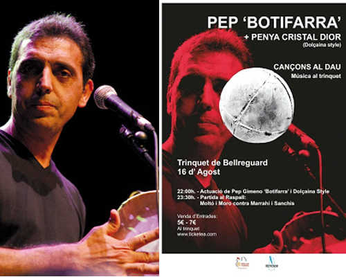 Pep ‘Botifarra’ i la Penya Cristal Dior oferiran un concert previ a la partida de raspall que disputaran Moltó i Moró contra Marahí i Sanchis