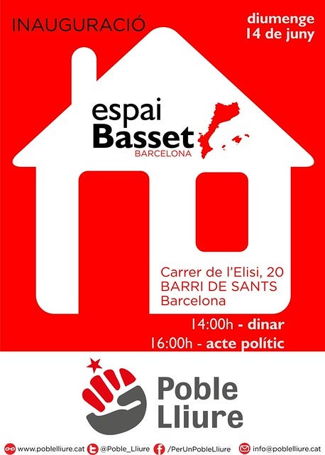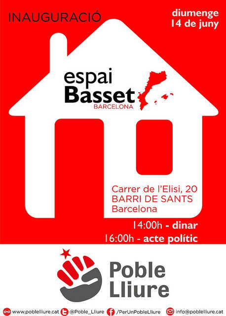 L’organització estratègica de l’esquerra independentista, Poble Lliure, inaugurarà el proper diumenge 14 de juny la seva seu nacional “Espai Basset” a Barcelona situada al barri Sants al carrer de l’Elisi, número 20. L’acte consistirà en un dinar popular a partir de les dos de la tarda i un acte polític a les quatre amb representants internacionals i membres de la pròpia organització.