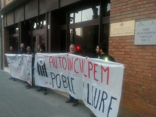 28 de desembre de 2014.- (Vic). El passat dimecres militants i simpatitzants de Poble Lliure d’Osona van concentrar-se davant del Jutjat d’Instrucció número 5 de Vic sota el lema “Ens inculpem per un poble lliure” per cridar a una autoinculpació massiva a la comarca per demà.
