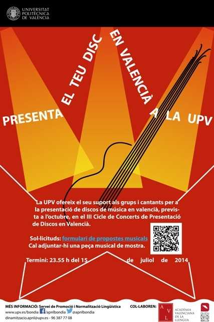 La UPV ofereix el seu suport als grups i cantants per a la presentació de discos de música en valencià.