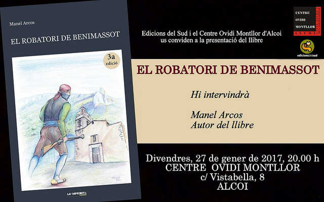 Aquest divendres, 27 de gener de 2017 A les 20.00 h Presentació del llibre El robatori de Benimassot Al Centre Cultural Ovidi Montllor d’Alcoi (c/ Vistabella, 8).
