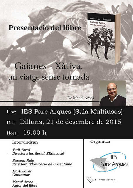 A la Sala Multiusos de l’IES Pare Arques de Cocentaina (Av. del Ferrocarril, 29).