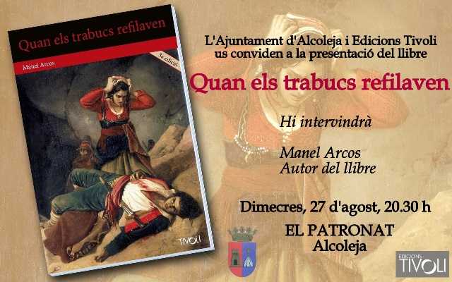 Presentació a ALCOLEJA del llibre QUAN ELS TRABUCS REFILAVEN Dimecres, 27 d’agost de 2014, a les 20.30 h, presentaré el meu treball d’investigació. Titulat Quan els trabucs refilaven, al PATRONAT d’Alcoleja. Manel Arcos i Martínez Alaquàs