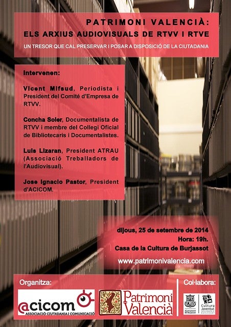 Des d’ACICOM, hem organitzat un acte de presentació, debat, reivindicació, conscienciació,.. sobre la gran importància pel patrimoni audiovisual valencià de la preservació dels arxius de RTVV i de RTVE a la Comunitat Valenciana.